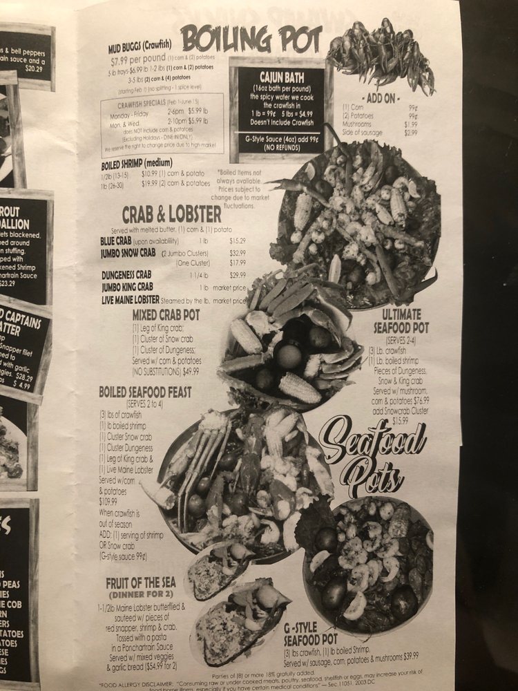 Serves two to four people. Three lbs of crawfish, one lb boiled shrimp, two clusters Snow crab, and one Live Maine Lobster. Served with corn and potatoes. all crawfish on pots to go are frozen