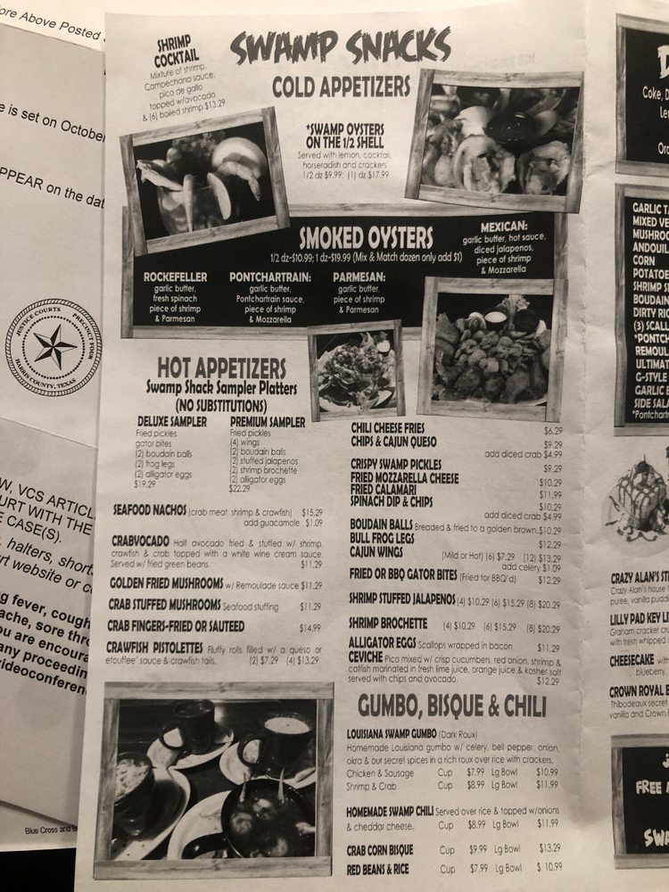 Introducing the menu at Crazy Alan's Swamp Shack, a Cajun/Creole seafood joint in Texas, known for its vibrant atmosphere and flavorful dishes. Customers rave about the Fried Gator Bites, Fried Pickles, and the Ultimate Seafood Pot, showcasing the diverse and well-prepared seafood options. The attentive service by servers like Jia and the welcoming ambiance add an extra layer of enjoyment to the dining experience. Manger Samantha's presence and genuine care for patrons also contribute to a satisfactory visit. With a rustic decor that complements the cuisine, Swamp Shack creates a lively and inviting atmosphere for guests. From delicious boudin appetizers to delectable frog legs, each dish is cooked to order and leaves customers wanting more. Overall, Crazy Alan's Swamp Shack delivers a memorable seafood experience with top-notch service and flavorful dishes.