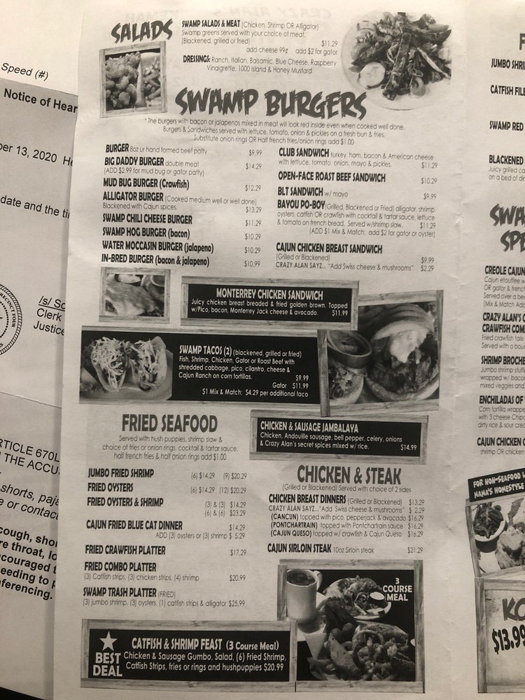 Crazy Alan's Swamp Shack Menu (Update 2025)